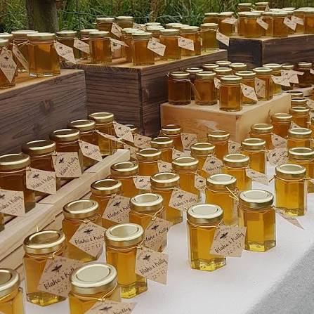 Honey Souvenir in various bottle and jar sizes Customized labels with event names, dates, and themes